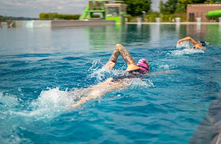 Unser Schwimmerbecken im Freibad bietet mit seinen sechs 50-Meter-Bahnen optimale Gegebenheiten für professionelle Schwimmer sowie Freizeitsportler.