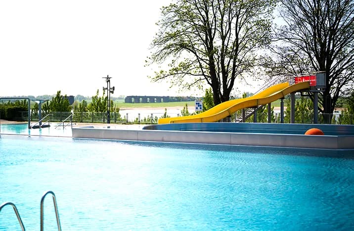 Unser Freibad bietet Ihnen ein 50-Meter-Sportbecken, ein Erlebnisbecken mit Crazy-River, Rutschen und vielen Wasserattraktionen sowie ein Sprungbecken mit 5-Meter-Sprungplattform, zwei 3-Meter- und zwei 1-Meter-Sprungbrettern. Und auch die Kleinsten kommen nicht zu kurz. Der Kleinkindbereich bietet zahlreiche Spielmöglichkeiten für die jüngsten Badegäste.