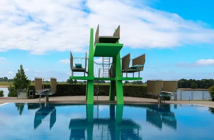Unser Sprungbecken ist ein Paradies für Adrenalinjunkies! Mit Sprungbrettern in verschiedenen Höhen von 1 und 3 m und einer 5 Meter Plattform bietet es Nervenkitzel für alle Mutigen.