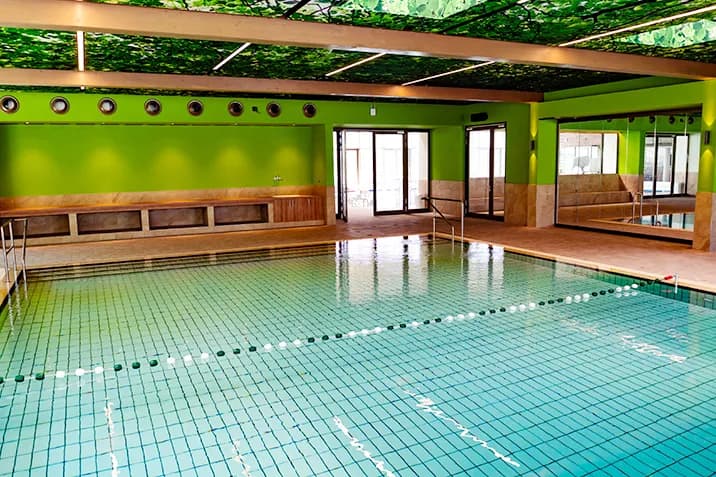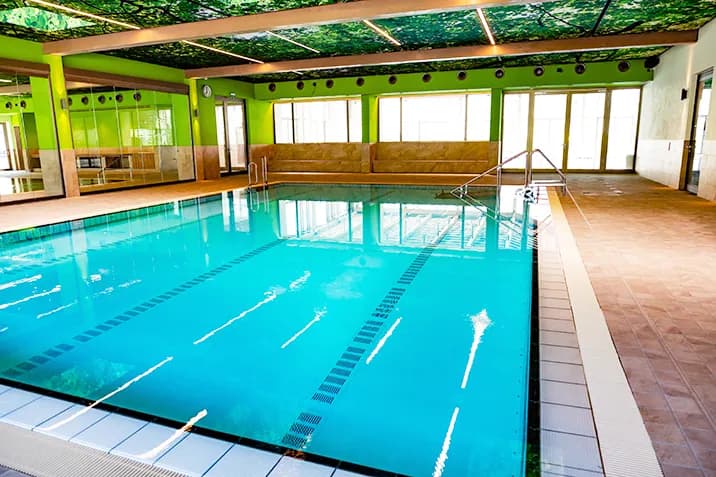 Unser Kursbecken mit variabler Wassertiefe ist ideal für z.B. Aqua-Fitness, Aqua-Cycling, Schwimmkurse und therapeutisches Training geeignet. Mit angenehmer Wassertemperatur und variabler Wassertiefe bietet es die perfekte Umgebung für effektives und sicheres Training.