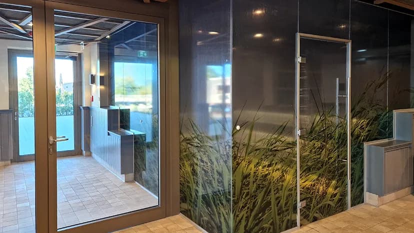 Die großzügigen Fensterfronten bieten in unserer Brückensauna von jedem Platz einen atemberaubenden Ausblick auf den Rhein.